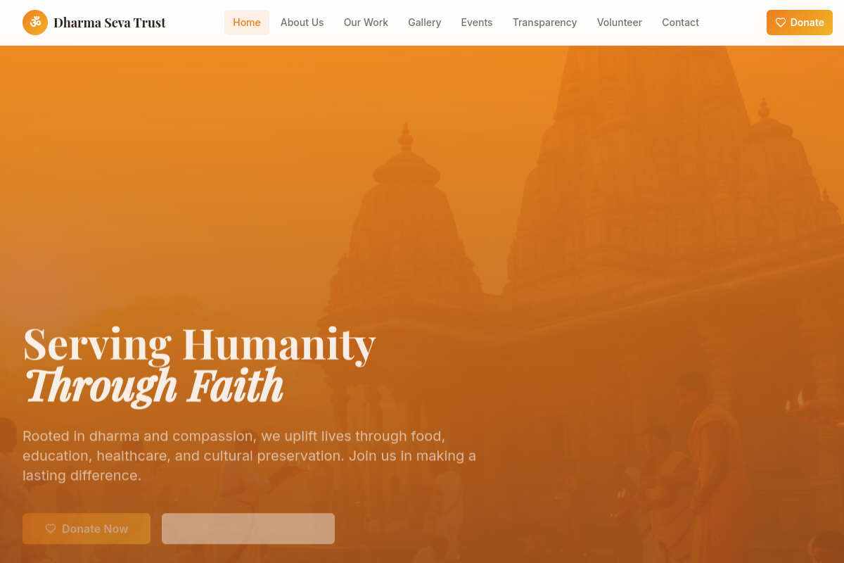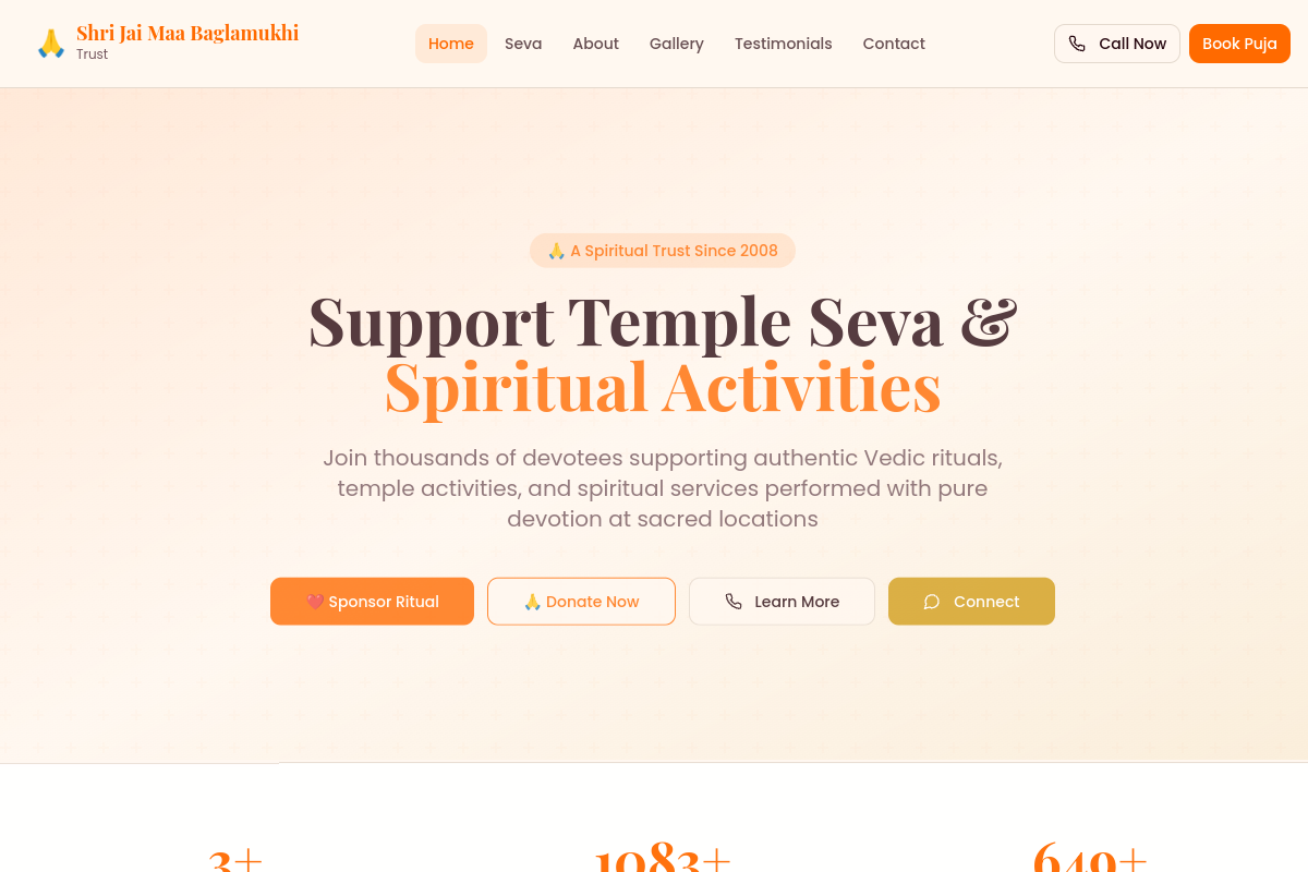 Religious trust website focused on donations and digital credibility.